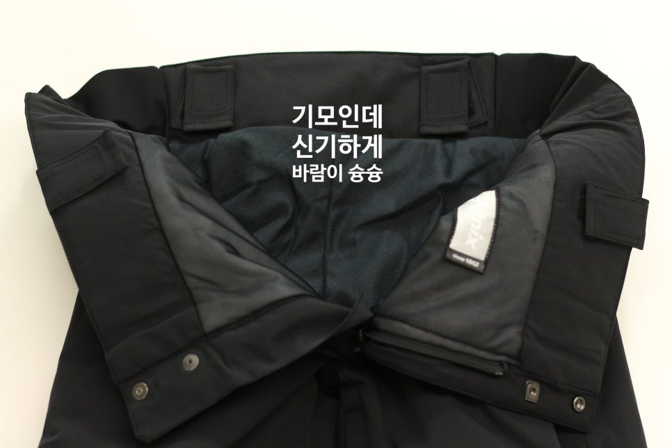 엉덩이와 사타구니쪽의 땀 배출이 많은 부위에는 투습성이 좋으면서 부드럽고 따뜻한 기모 원단을 따로 대놓았습니다.