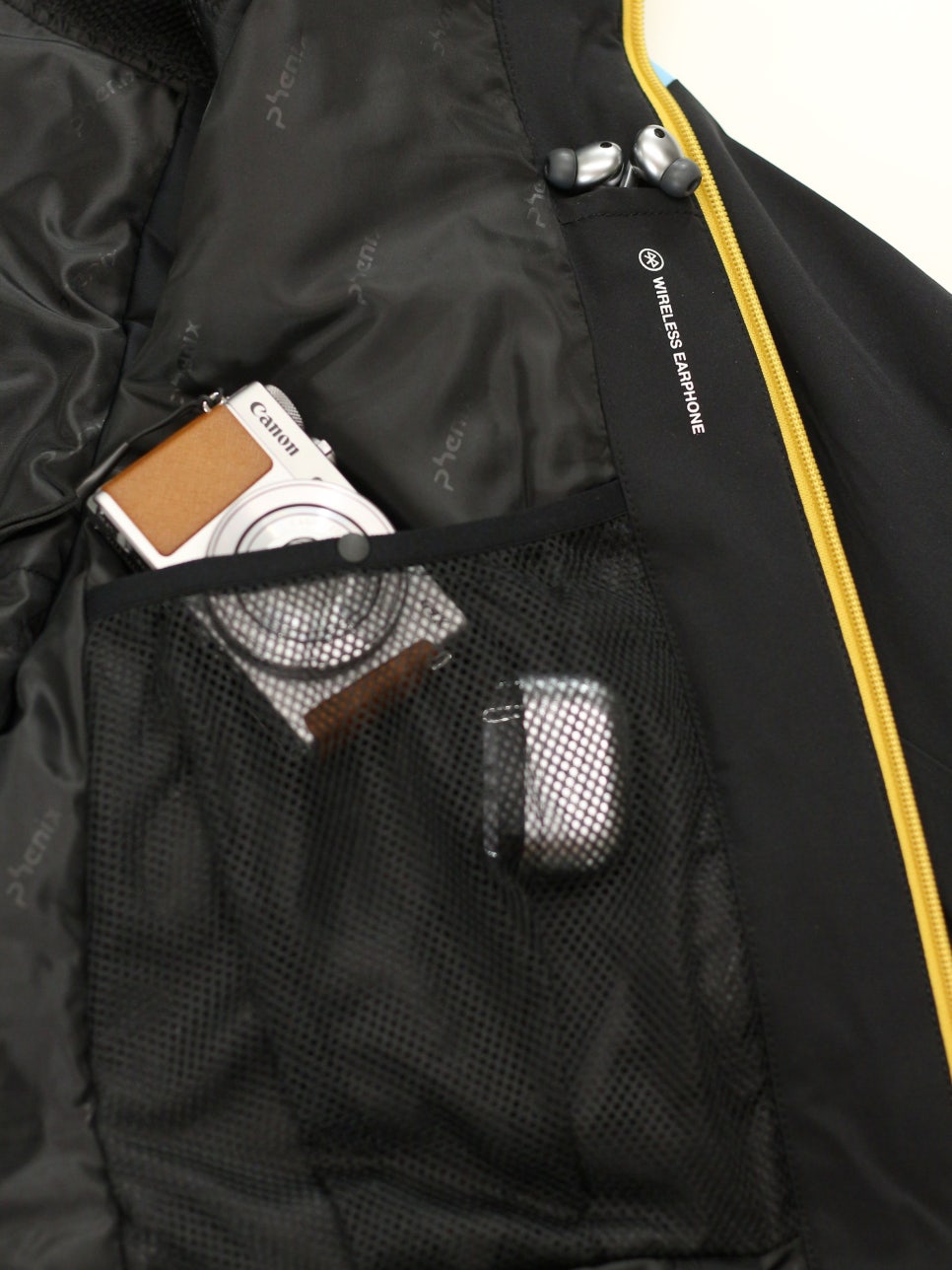 가슴 앞쪽에는 조그만, 무선 이어폰 전용 포켓이 있습니다.