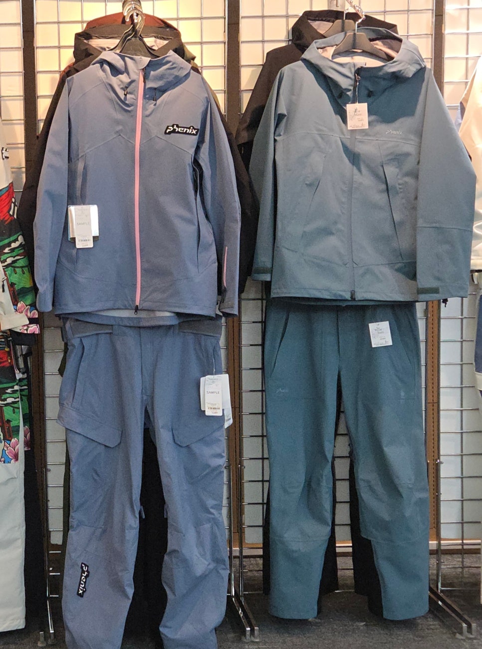 3 Layer 쉘 자켓, 쉘 팬츠로 구성된 웨어인데 두 모델이 스타일이 약간 다르죠.