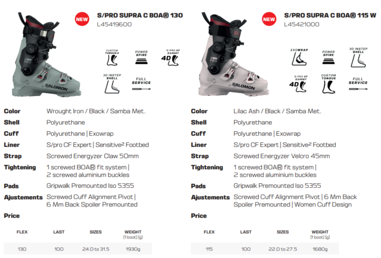 또한 남성 130/120/100, 여성 105W/95W/85W 의 플렉스를 가지고 있어 발이 넓은 상급자까지 대응할 수 있는 부츠이므로 발 폭의 문제가 있는 상급 스키어도 관심을 가져볼 수 있습니다.