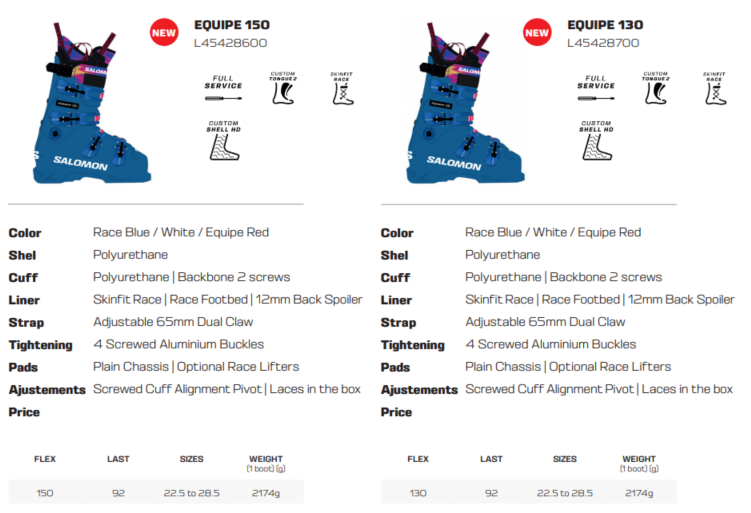 S/LAB EQUIPE: 엘리트 선수 및 월드컵 레이서를 위한 부츠, 이전의 S/RACE2 의 후속입니다. EQUIPE 보다 쉘이 두껍고 무거우며, 더 강력한 컨트롤을 제공합니다.