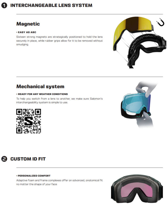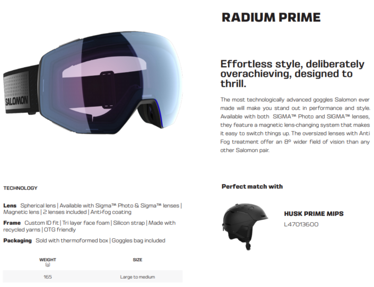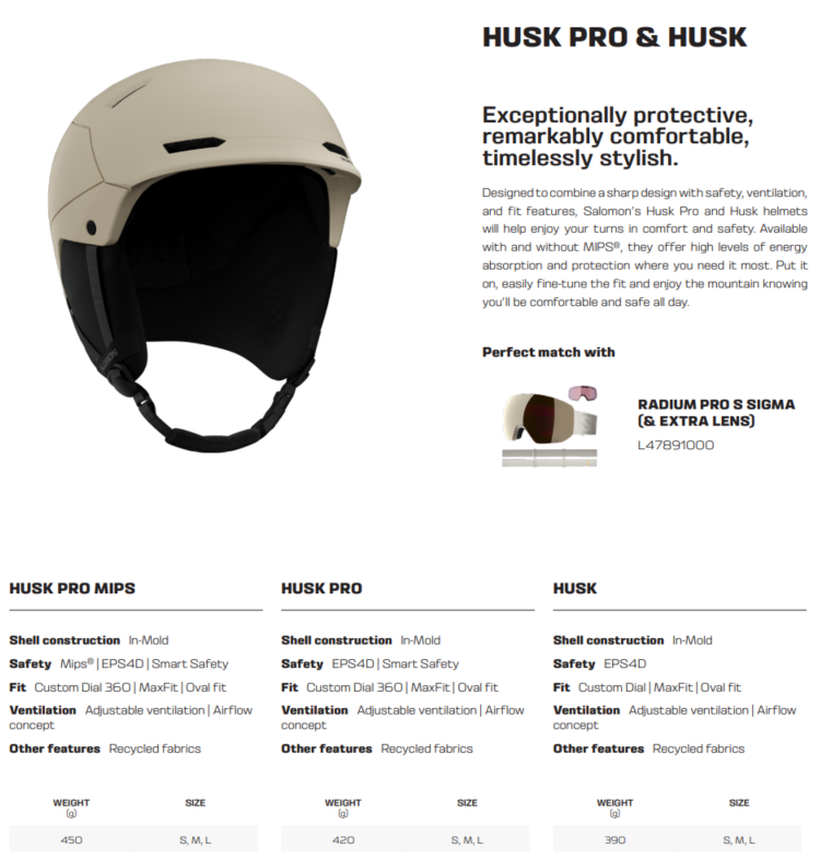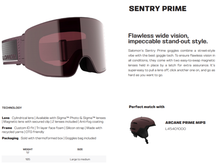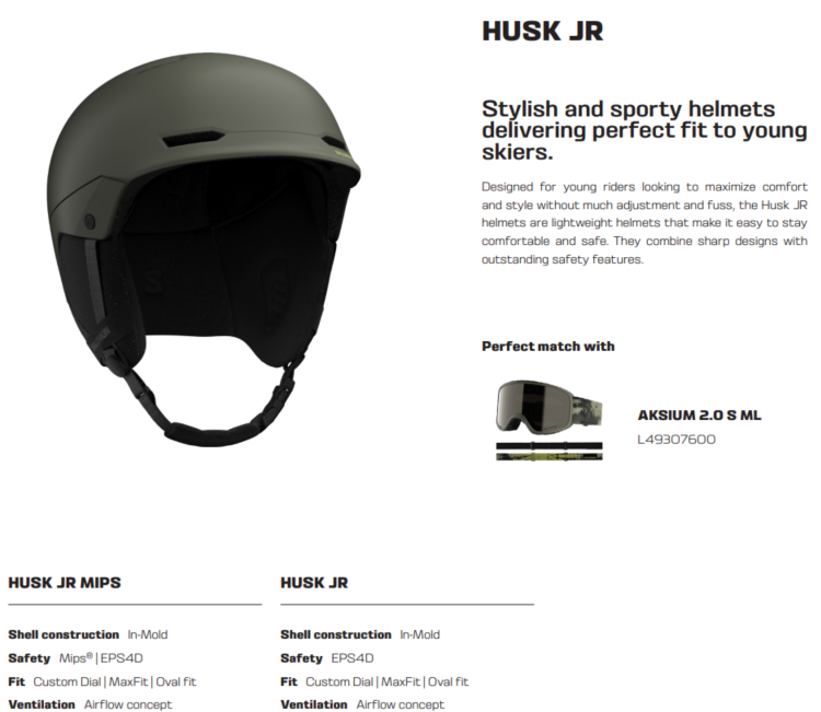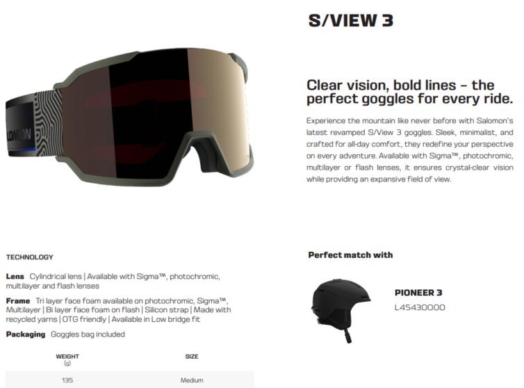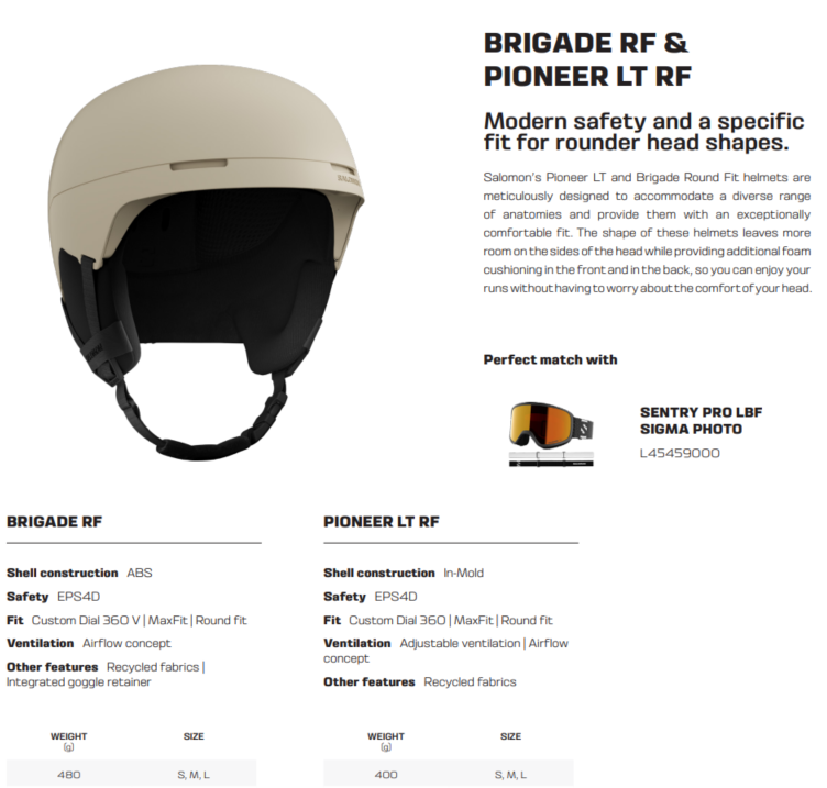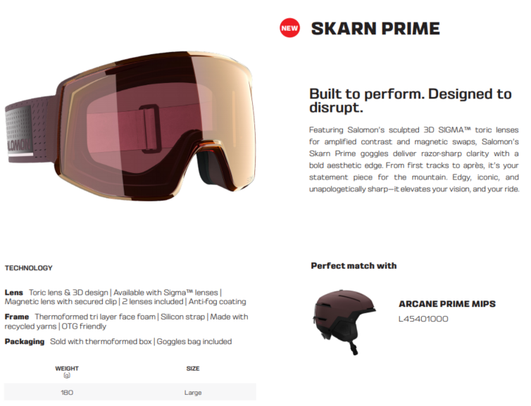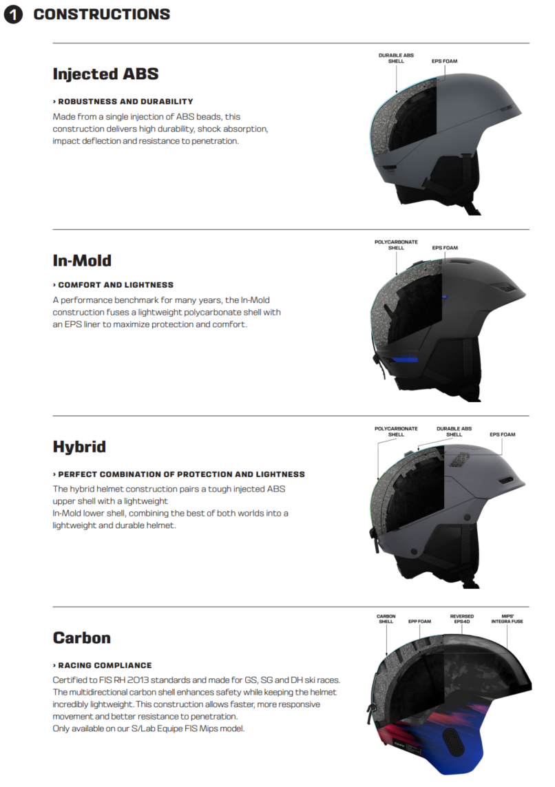 살로몬은 바이저 헬멧을 ALL-MOUNTAIN/ON-PISTE 적응 제품의 맨 앞에 리스팅하고 있습니다.
