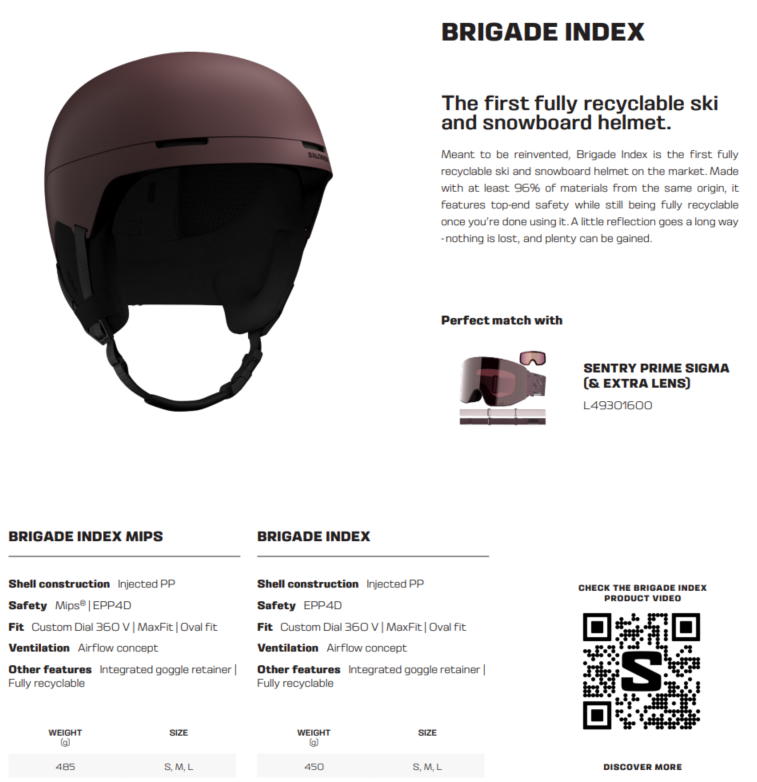 헬멧 라이너의 재활용 소재 비율 증가, 고글 스트랩 재생 원사 사용등 친환경 소재 사용이 확대되고 있으며 완전 재활용 헬멧(Brigade Index)을 출시하고 있습니다.