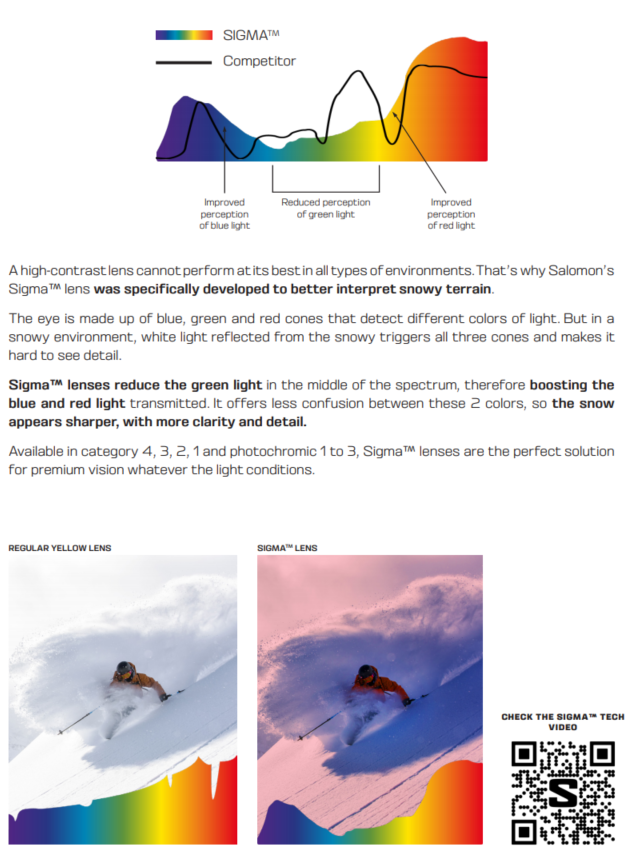 시그마™는 살로몬의 혁신적인 렌즈 솔루션으로, 눈 위에서 색상 대비를 현저히 증폭시켜